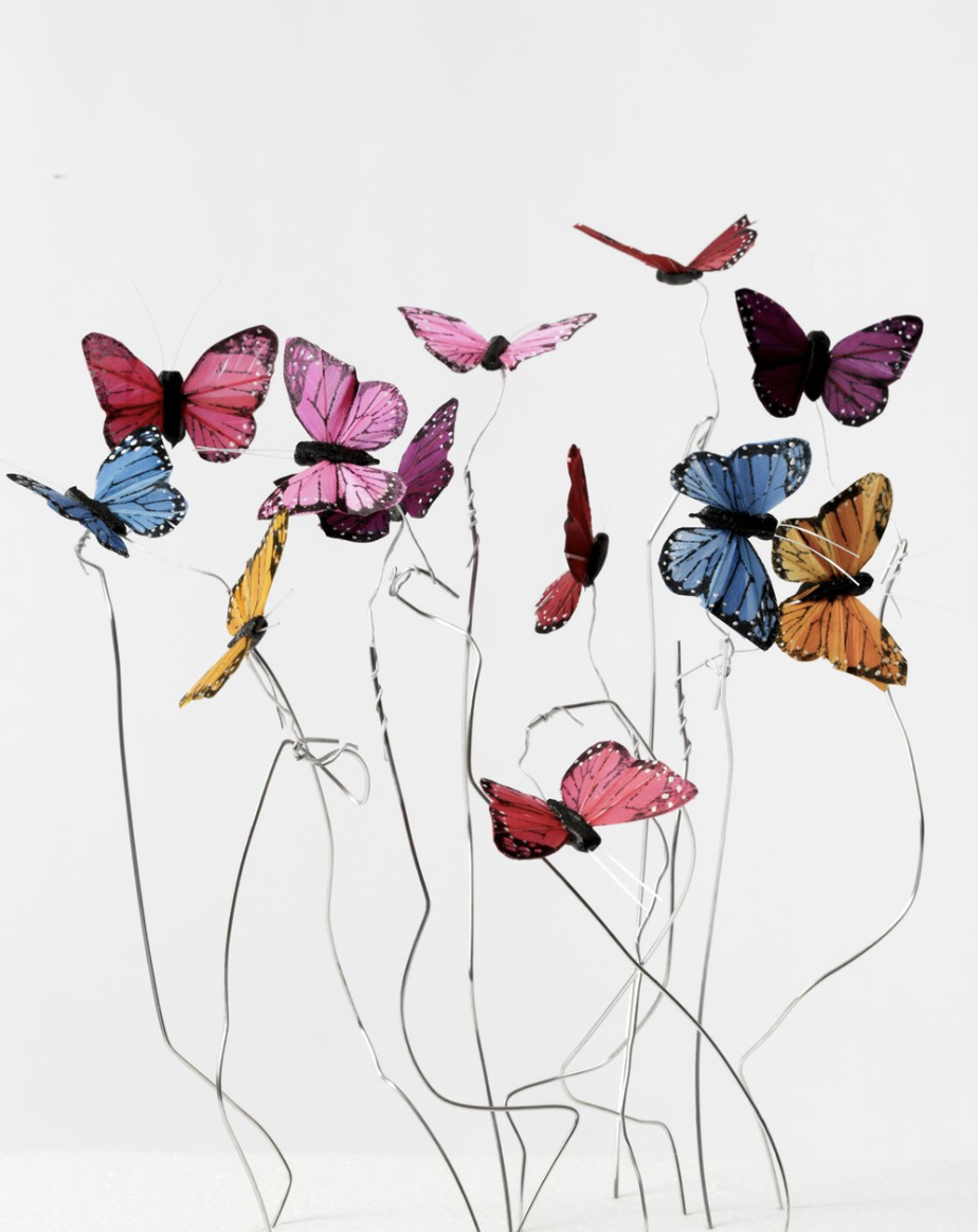 These feather butterflies will bring joy to just about anything! Poke them in cakes, flower arrangements or wrapped gifts to add a little whimsy and irreverence